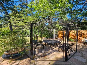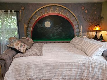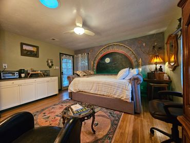 Step into the Zen Room, a sanctuary designed to restore clarity, grounding, and inner renewal. Rooted in the Earth element, this space invites guests to reconnect with stability and presence through a calm, intentional environment. The Zen Room’s private garden, complete with a Buddha fountain, a wrought-iron gazebo, and quiet seating, offers a perfect setting for forest bathing, meditation, or simply breathing in the stillness. Inside, natural textures, grounding mats, and a thoughtful design foster balance of mind, body, and spirit. Here, guests are encouraged to let go of distraction, find their center, and return to the world refreshed, anchored, and more fully themselves.
